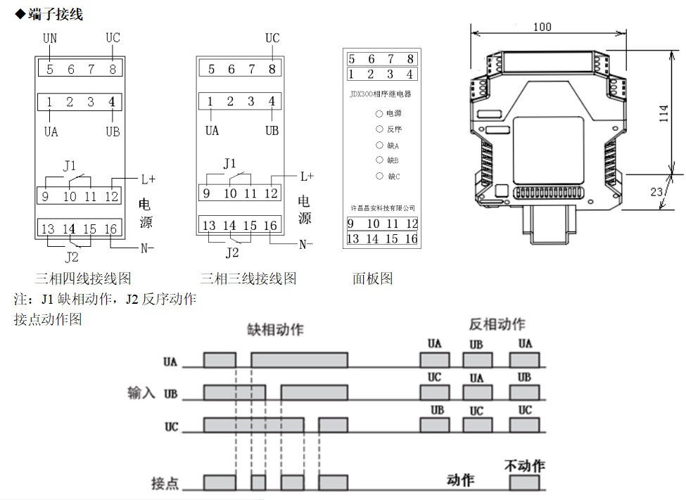 指示燈:電源指示,反相序指示,缺A相指示,缺B相指示,缺C相指示。