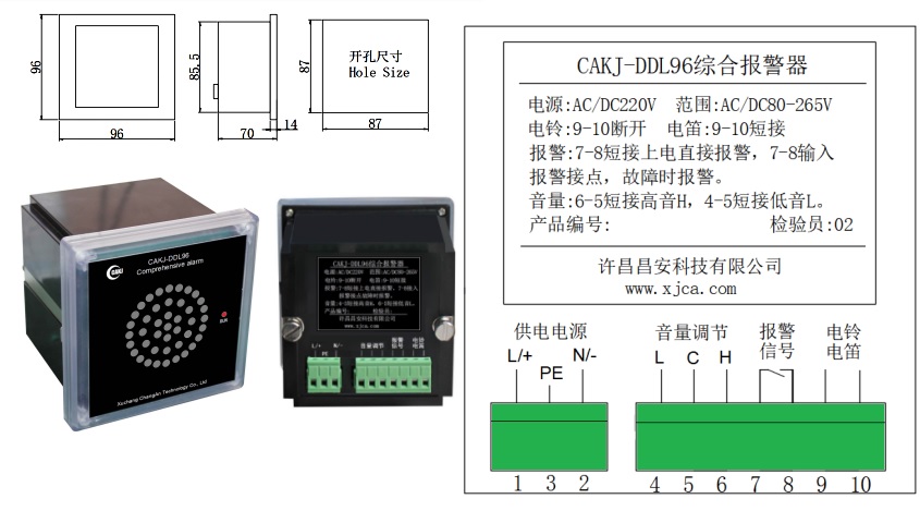 CAKJ-DDL96綜合報(bào)警器,是為電力系統(tǒng)中央信號(hào)報(bào)警而設(shè)計(jì)的一款低功耗、無(wú)干擾、大音量電子式報(bào)警設(shè)備。采用單片機(jī)模擬電磁式電鈴電笛聲音頻譜,其發(fā)聲與電磁式電鈴電笛發(fā)聲相似度達(dá)98%。
