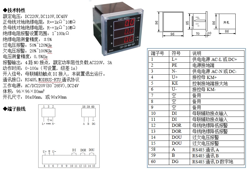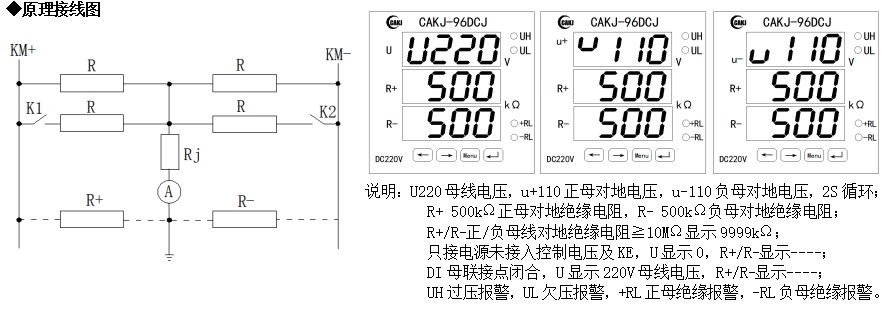 CAKJ-96DCJ絕緣監(jiān)察裝置,適用于DC300V以下直流不接地系統(tǒng)絕緣監(jiān)測(cè)。通過(guò)橋式比較電路及乒乓輔助判斷電路,準(zhǔn)確計(jì)算出直流母線正負(fù)極對(duì)地絕緣電阻(單母線絕緣降低或雙母線平衡絕緣降低),并給出不同信號(hào),為直流系統(tǒng)故障分析提供依據(jù)。