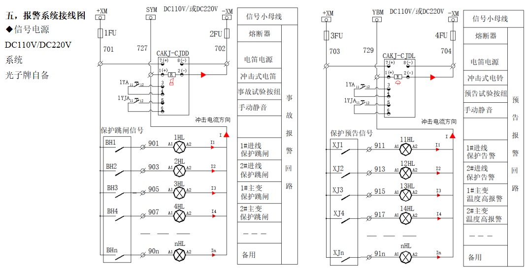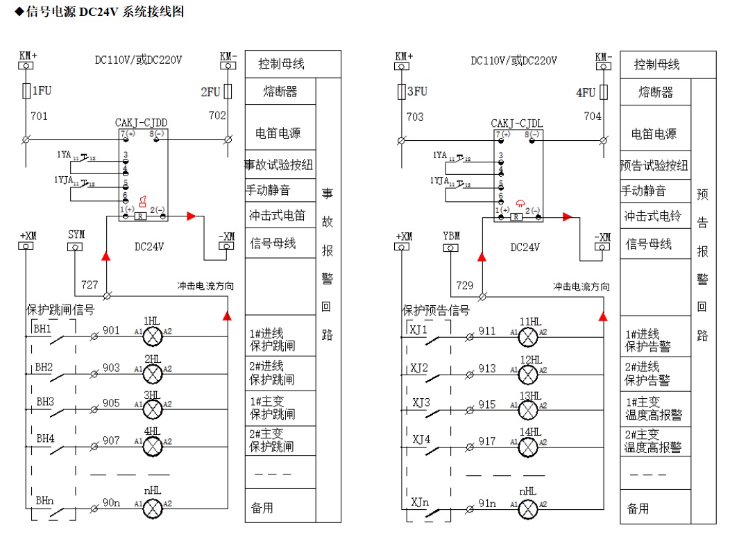 電流沖擊式電笛、電鈴,采集光字牌公共母線(xiàn)(公共端)或事故母線(xiàn)SYM、預(yù)告母線(xiàn)YBM的沖擊電流信號(hào), 驅(qū)動(dòng)電笛、電鈴發(fā)聲。