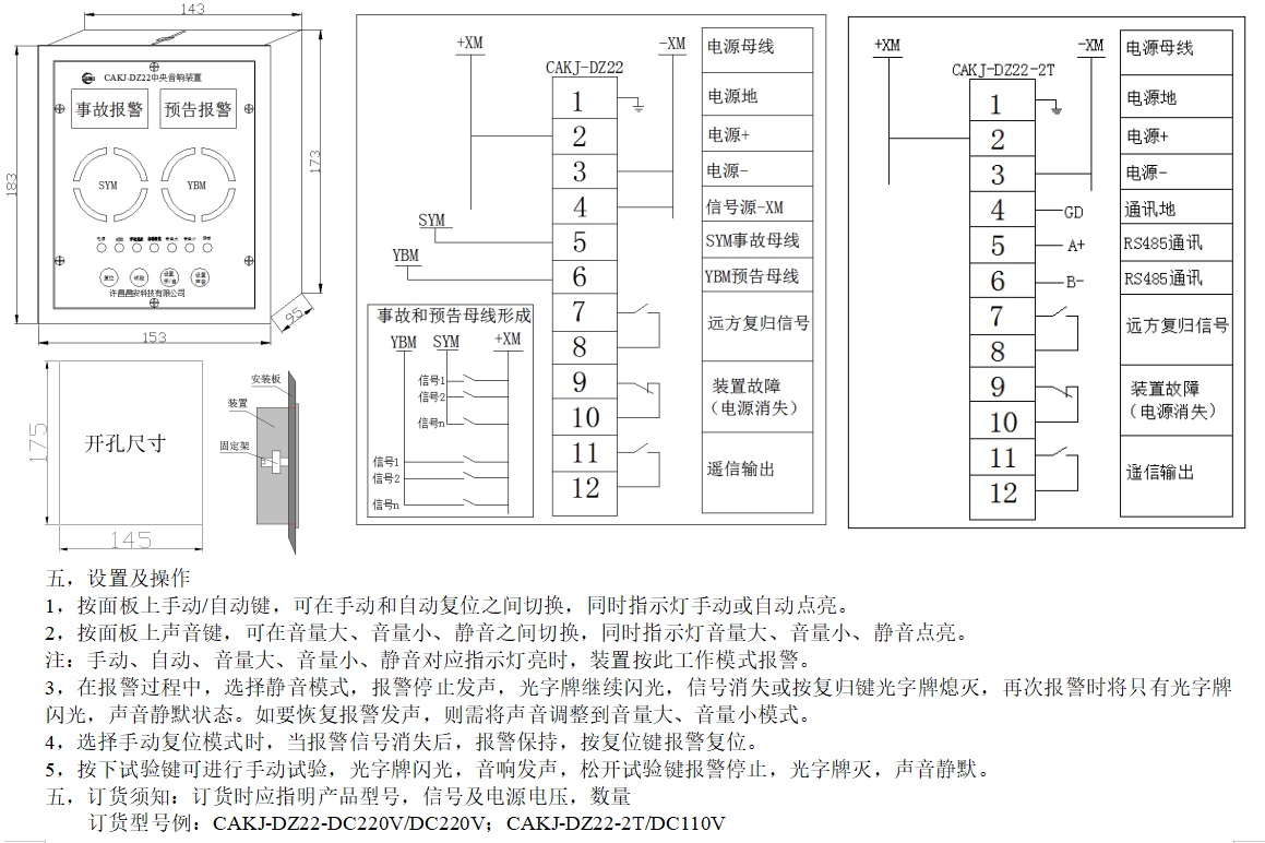 CAKJ-DZ22中央音響裝置,是為電力系統(tǒng)中央信號聲光報警而設計的一款低功耗、無干擾、大音量電子式報警設備(音量可調(diào)節(jié),可靜音)。采用單片機模擬電磁式電鈴電笛聲音頻譜,其發(fā)聲與電磁式電鈴電笛發(fā)聲相似度達98%。且具備報警信號保持(自動及手動復位)及遠程復歸功能。